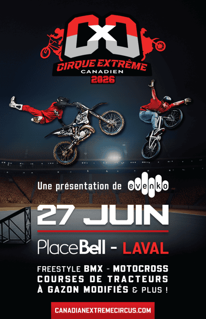 Un nouveau concept de spectacle familiale en arena mettant en vedette des sports extrême comme du freestyle motocross avec les meilleurs riders Canadien dont LP Chabot et Mike Ouellet. Aussi, freestyle BMX avec Mike Varga, triple champion des X-Games, des courses de E-Kart et plusieurs autres actes extrêmes seront au rendez-vous pour vous émerveiller.